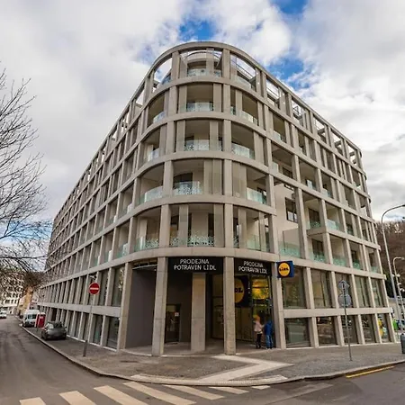 In voll ausgestatteter Küche gibt es auch einen Herd und einen Geschirrspüler. Die nächste Bushaltestelle Klamovka liegt weniger als 100 Meter entfernt.